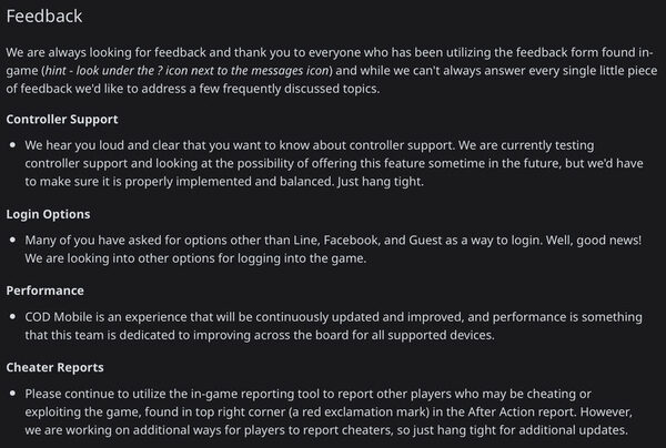 Activision опубликовала обратную связь по этому вопросу на subreddit. Компания ясно дала понять, что все игроки были услышаны и на данный момент проводятся различные тестирования поддержки контроллера. Для компании очень важно качество, и поэтому они просят игроков набраться терпения и ждать результатов тестов.