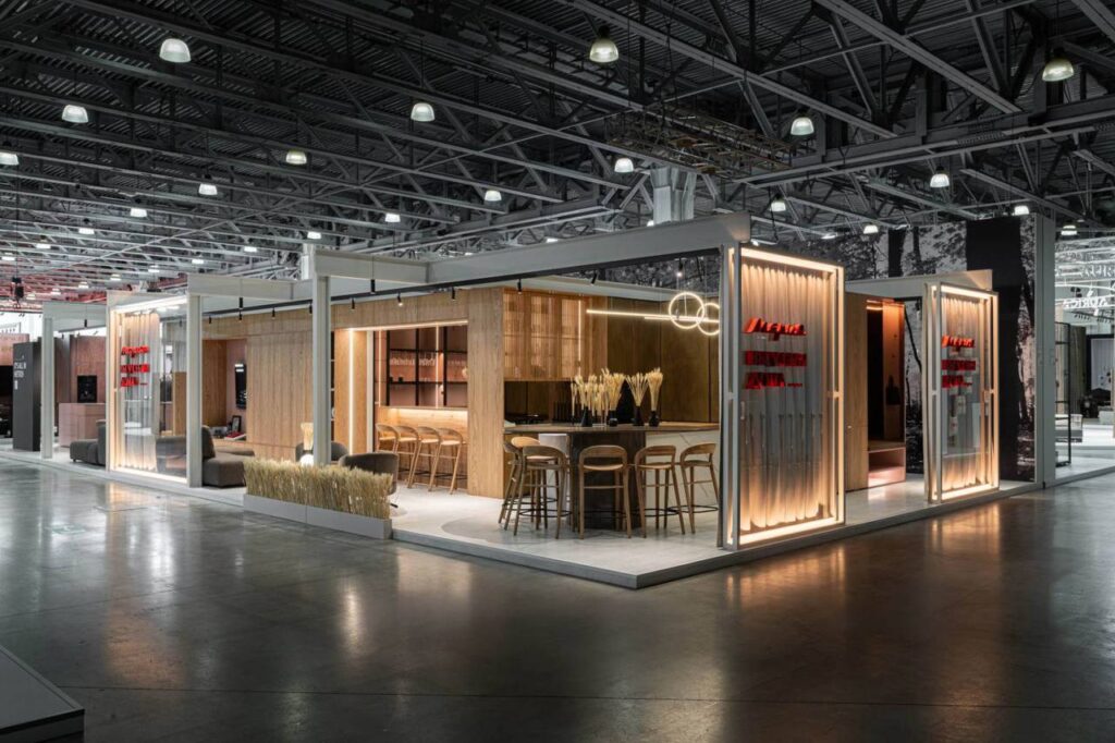 При создании экспозиции «Прозрачный дом» ее авторы вдохновлялись легендарной постройкой XX ст. — «Домом Фарнсуорт» архитектора Людвига Мис ван дер Роэ. При этом они создали свое пространство, которое адаптировано к нынешним реалиям, а также объединяет актуальные тренды и современные технологии. Так, фабрика представила полноценную модель функционального дома с прихожей прихожую, спальней, гардеробной, парадной кухней, гостиной, лаундж-пространством, рабочим кабинетом, ванной комнатой с прачечной и даже баром с винотекой.