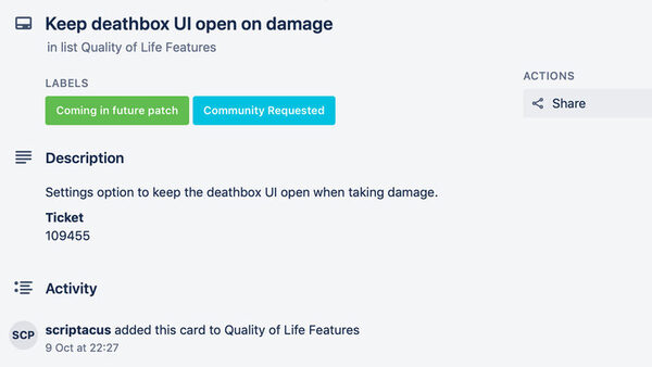 Этот выпуск озаглавлен «Держите интерфейс смерти открытым при повреждении». Он подтверждает, что игрокам будет предоставлен выбор, хотят ли они сохранить эту функцию.