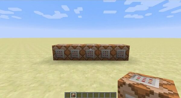 После того, как командный блок появится в вашем инвентаре, разместите его 5 раз подряд. Затем щелкните по первому блоку правой кнопкой мыши и введите: