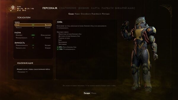 Первое, что необходимо учесть изначально, так это характеристики персонажа. Создавайте своего героя изначально с высокими показателями силы, общения и скрытности. Сила позволит переносить больше предметов для последующей продажи. Общение же будет способствовать более высокой цене при продаже предметов торговцам, а покупаемый вами товар окажется дешевле. Скрытность одна из самых интересных особенностей в The Outher Worlds, ведь она позволит вам повысить шанс на успех кражи предметов и денег. Однако, выбирая этот параметр максимальным, придется пожертвовать другими атрибутами.