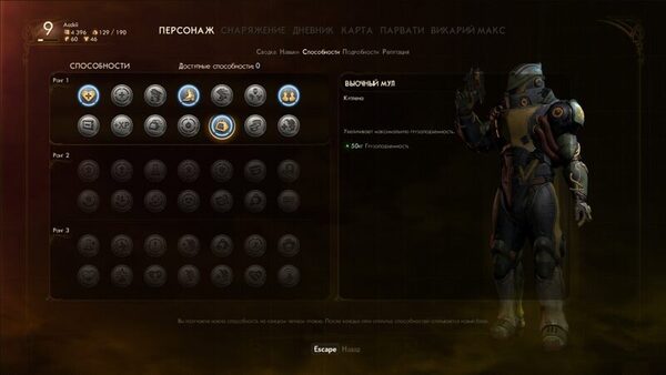 Далее следует способность «Барахольщик», которая уменьшает вес расходных материалов на 50%, что позволит носить с собой «небольшой магазин».