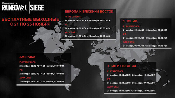 Крайне популярный боевик (в Steam более 350 тыс. «очень положительных» отзывов) Rainbow Six Siege готовит уик-энд открытых дверей 21 ноября, все желающие консольщики и пекари смогут бесплатно скачать игру и поиграть до 25 ноября включительно.