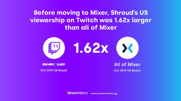 По данным сайта StreamMetrics, Shroud имел 730+ тыс. уникальных зрителей в месяц на «Твиче», тогда как на Mixer всего 230+ тыс. В первый месяц стримов на новом месте его смотрело лишь 15% старых зрителей, а вот на след. месяц их уже было 47%.