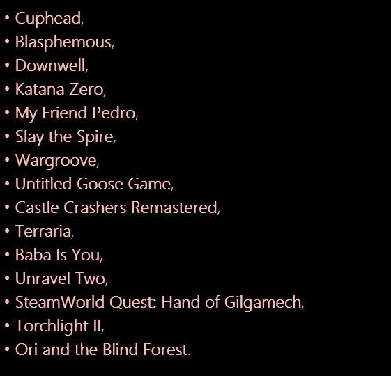 В частности в списке оказалась забавная игра про ужасного гуся Untitled Goose Game, неординарный пазл Baba Is You, взявший немало наград на разных инди-фестивалях, и мультижанровый «рогалик» Slay the Spire, набравший на Metacritic 89 баллов. Полный список смотрите ниже.