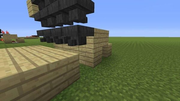 Для начала поднимитесь на 4 блока вверх и разместите 5 загрузочных воронок смотрящих в лево. Затем 4 загрузочных воронки указывающих вниз, как показано на скриншотах выше.