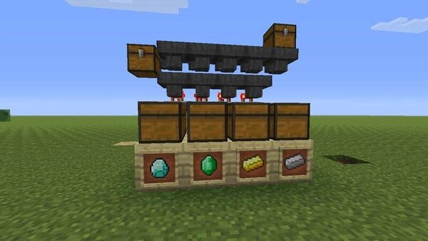 Вы можете добавлять еще больше сундуков и загрузочных воронок чтобы сортировать как можно больше предметов.