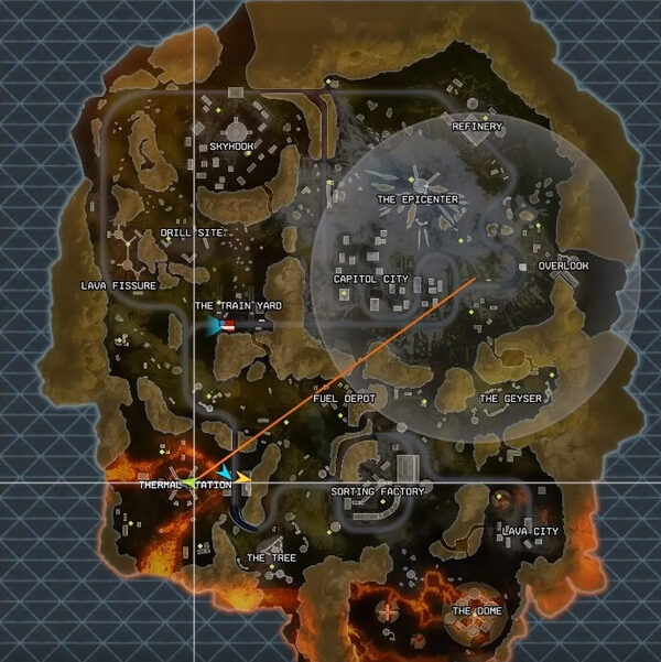 - Thermal Station: большая область, расположенная в нижнем левом углу карты, которая содержит много открытых областей. А окружающее озеро лавы опасно, поэтому игрокам следует использовать предоставленные Ziplines для входа / выхода.