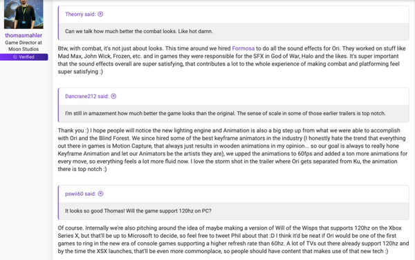 Новое поколение консолей сможет поддерживать удвоенную по сравнению с текущими приставками частоту кадров в секунду — 120, и Ori and the Will of the Wisps может стать первой для Xbox Series X (в прошлом Scarlett), с таким FPS. Об этом сказал гейм-директор студии Thomas Mahler на форуме, а его пост заскринили и выложили на Reddit.