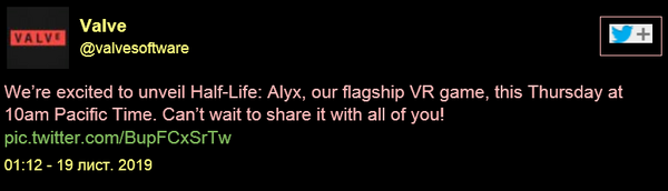 Наконец-то серия Half-Life получает официальное продолжение, что правда, это не третья часть, судя по всему, это отдельная игра для виртуальной реальности. Вполне возможно, Half-Life: Alyx станет эксклюзивом для VR-гарнитуры от Valve, но пока о новинке известно очень мало, Гэйб обещает раскрыть карты в четверт 21 ноября, в 21:00 по московскому времени.