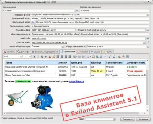 В версии 5.1 был улучшен редактор заметок и вкладки «Примечания» в карточках записей. Теперь вы можете выделять текст цветом, поджирнять, наклонять, подчеркивать, выравнивать, выбирать начертание шрифта и размер, работать с таблицами, вставлять изображения, списки, гиперссылки, выполнять выгрузку в Word, печатать на принтере и т.д.
