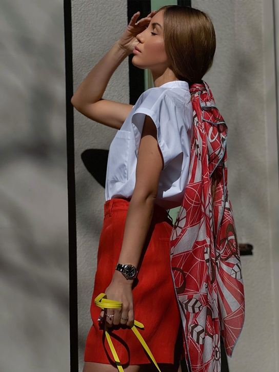 Говоря о трендовых цветах в летнем образе 2022 года, Лилия рассказала, что: первое — это натуральность тканей, а второе — яркость цветов. «Я считаю, что лето вообще невозможно представить без образов из натуральных тканей. Сейчас люди начали больше уделять внимание на качество тканей и пошива, а также всё чаще задумываться на тему грамотного гардероба. Поэтому спрос рождает предложение: тренд этого лета — стильные костюмы, бермуды, платья, блузки из льна, шелка и хлопка. Цвета при этом самые яркие: небесно-голубой, синий, насыщенно зелёный, ярко-розовый и оранжевый, благородный оттенок фуксии. Ни в коем случае не забываем про самые базовые спокойные цвета: белый, чёрный, бежевый. Стильный гардероб, состоящий из спокойных сдержанных оттенков, всегда можно эффектно дополнить яркими трендами, за счёт цвета», — подчеркнула она.