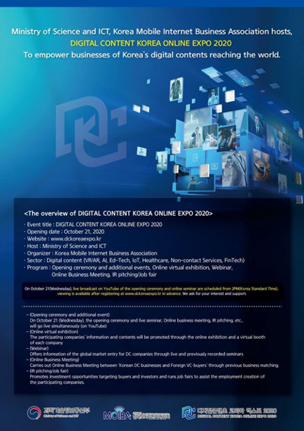 Oganization: Korea Mobile Internet Business Association(MOIBA) / DIGITAL CONTENT KOREA ONLINE EXPO 2020