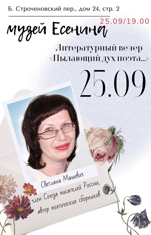 25 сентября, в 19.00 в Московском государственном музее Сергея Есенина…