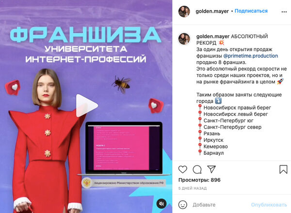 Для российского рынка это феномен. Продажа одной франшизы в первые полгода —…