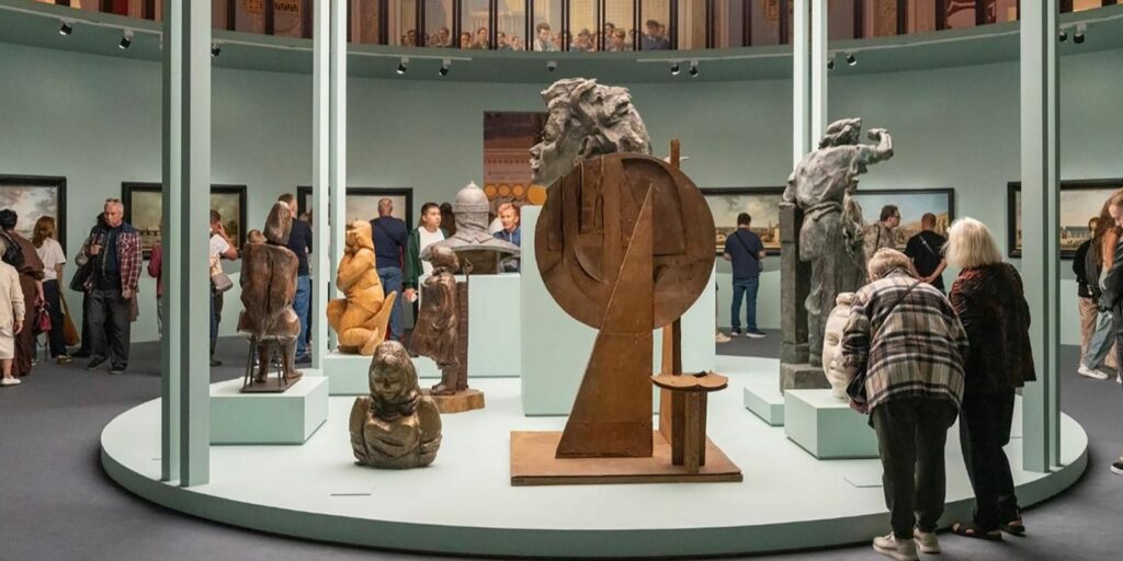В экспозиции можно увидеть 115 произведений, привезенных из Санкт-Петербурга, например…