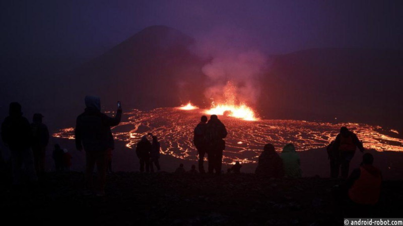 Любопытные зрители отправились в четверг на место извержения вулкана недалеко…