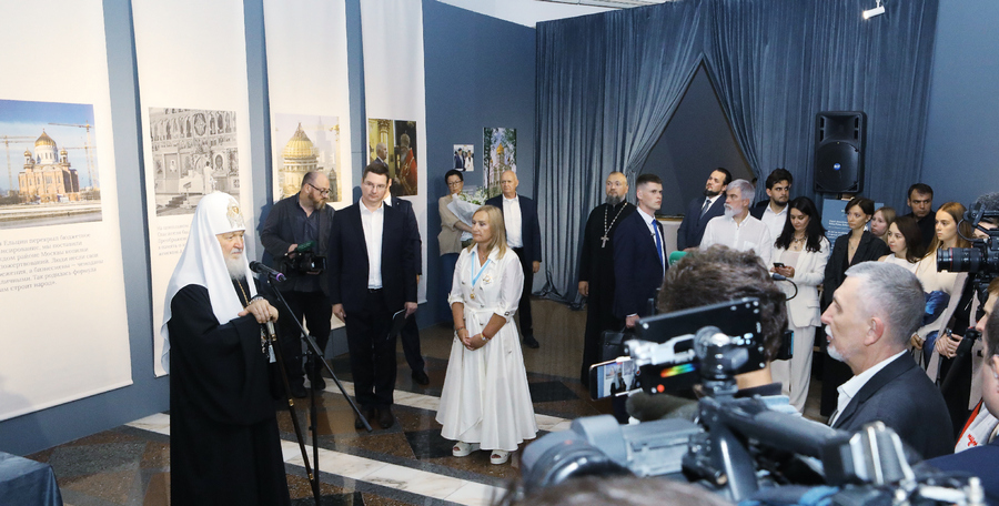Патриарх Кирилл открыл выставку «Москва и жизнь. Возрождение московского Храма», посвященную Юрию Лужкову