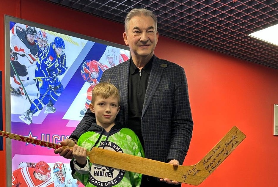 Отныне клюшка с автографом Владислава Третьяка, символизирующая преемственность хоккейных традиций, будет почетным экспонатом Зала славы орловской школы хоккея «Наш лед».
