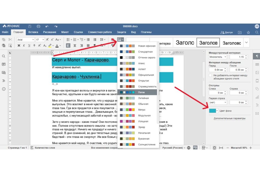 Пользователи «Р7-Офис» могут задавать текстовым документам цветовые схемы, отличные от той, что стоит по умолчанию.