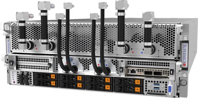 Кроме того, Supermicro предлагает комплексное решение жидкостного охлаждения собственной разработки, включая охлаждающие пластины для центральных и графических процессоров и памяти, распределительных блоков охлаждения, распределительных коллекторов охлаждения, шлангов, разъемов и градирен. Жидкостное охлаждение может быть легко включено в интеграцию на уровне стойки для дальнейшего повышения эффективности системы, сокращения числа случаев ограничения производительности из-за перегрева и снижения совокупной стоимости владения и совокупного влияния на окружающую среду (TCE) развертываемых центров обработки данных.