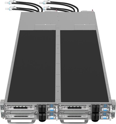 Кроме того, Supermicro предлагает комплексное решение жидкостного охлаждения собственной разработки, включая охлаждающие пластины для центральных и графических процессоров и памяти, распределительных блоков охлаждения, распределительных коллекторов охлаждения, шлангов, разъемов и градирен. Жидкостное охлаждение может быть легко включено в интеграцию на уровне стойки для дальнейшего повышения эффективности системы, сокращения числа случаев ограничения производительности из-за перегрева и снижения совокупной стоимости владения и совокупного влияния на окружающую среду (TCE) развертываемых центров обработки данных.